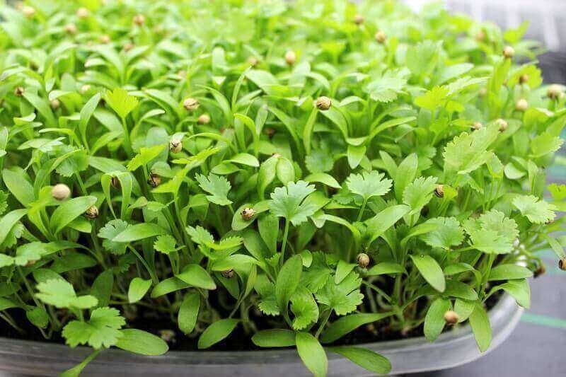 Cilantro microgreens also contain flavonoids, polyphenols, and essential oils that contribute to their strong aroma and anti-inflammatory, antimicrobial, and detoxifying properties.